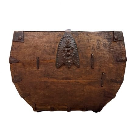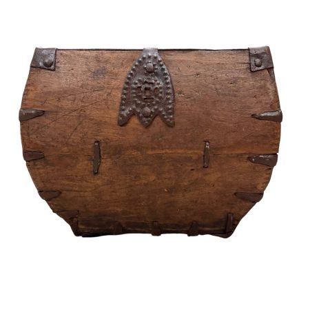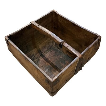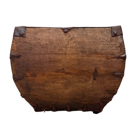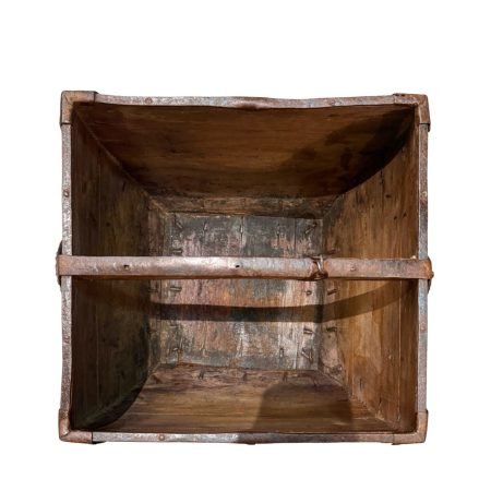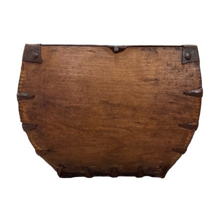 This antique Shanxi rice scoop has beautiful original ironmongery. The perimeter around the top, and on the top of the handle bar are all lined with cast iron, to protect against damage & chips.