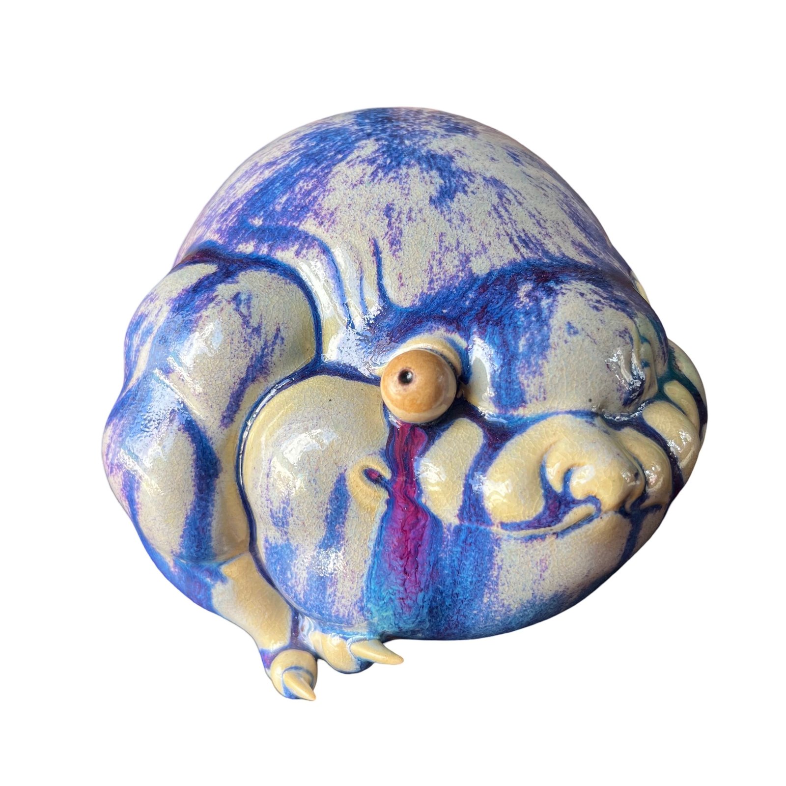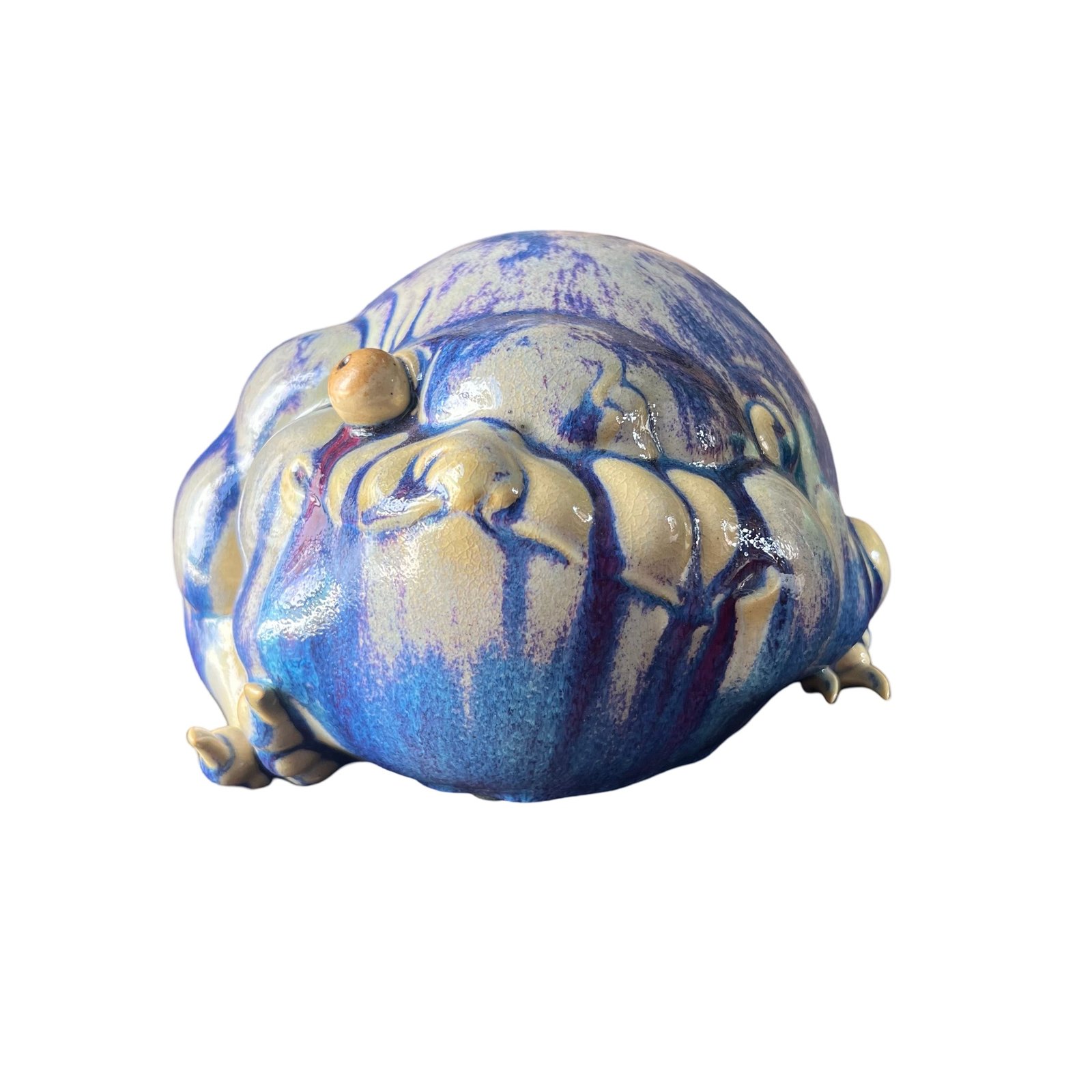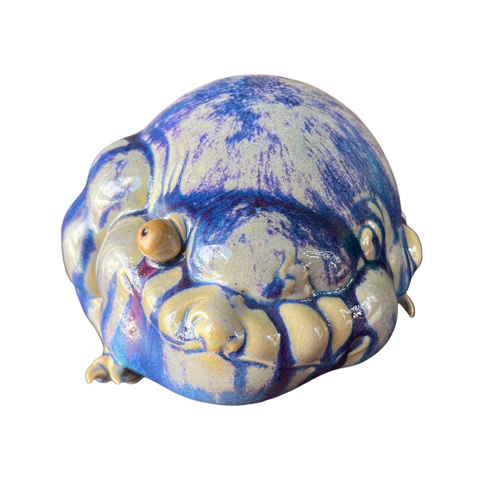 The “three-legged toad” or “money toad” is a popular fengshui charm as it’s supposed to beckon wealth & abundance, and it is usually depicted with red eyes and only one hind leg (hence three-legged). When creating this piece, the artist had given it a humorous twist. The title of this sculpture is called “钱孔看人生”, which literally translates to “looking at life through the hole in the Chinese coin”. The toad has one eye shut because it is peeking through the hole of the Chinese coin, the meaning behind it is “looking at life only through the perspective of money”, lamenting the amount of emphasis/importance that our current society places on money.