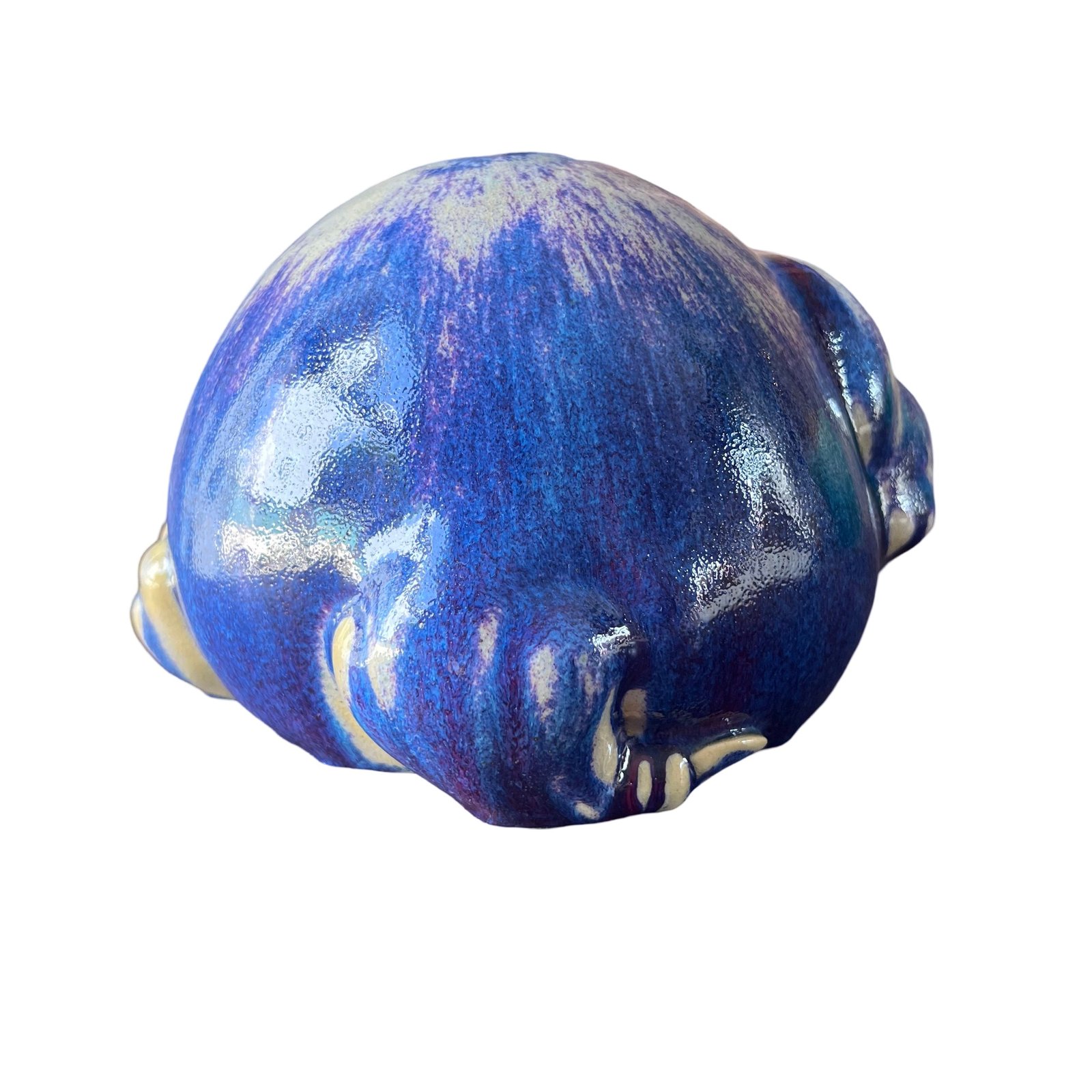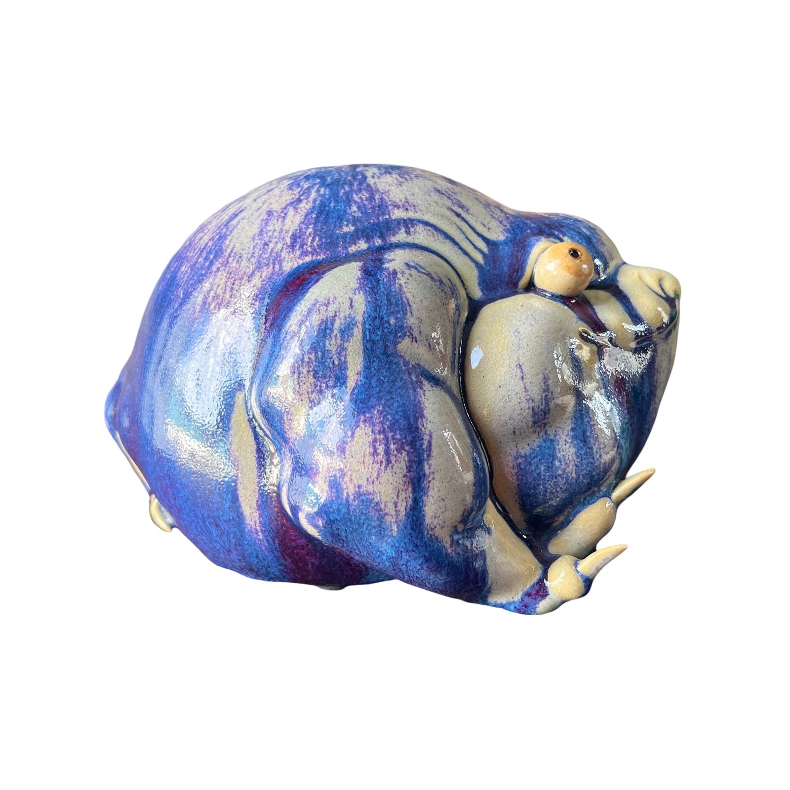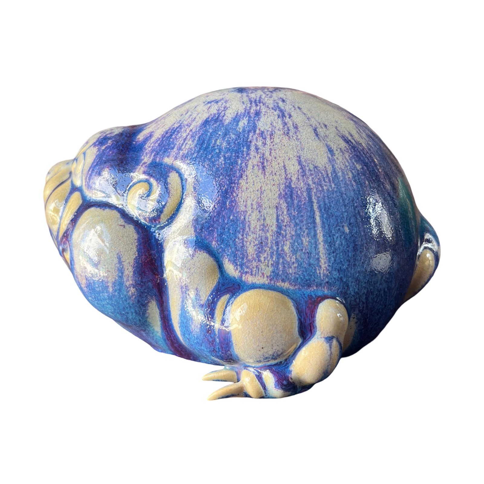 The “three-legged toad” or “money toad” is a popular fengshui charm as it’s supposed to beckon wealth & abundance, and it is usually depicted with red eyes and only one hind leg (hence three-legged). When creating this piece, the artist had given it a humorous twist. The title of this sculpture is called “钱孔看人生”, which literally translates to “looking at life through the hole in the Chinese coin”. The toad has one eye shut because it is peeking through the hole of the Chinese coin, the meaning behind it is “looking at life only through the perspective of money”, lamenting the amount of emphasis/importance that our current society places on money.
