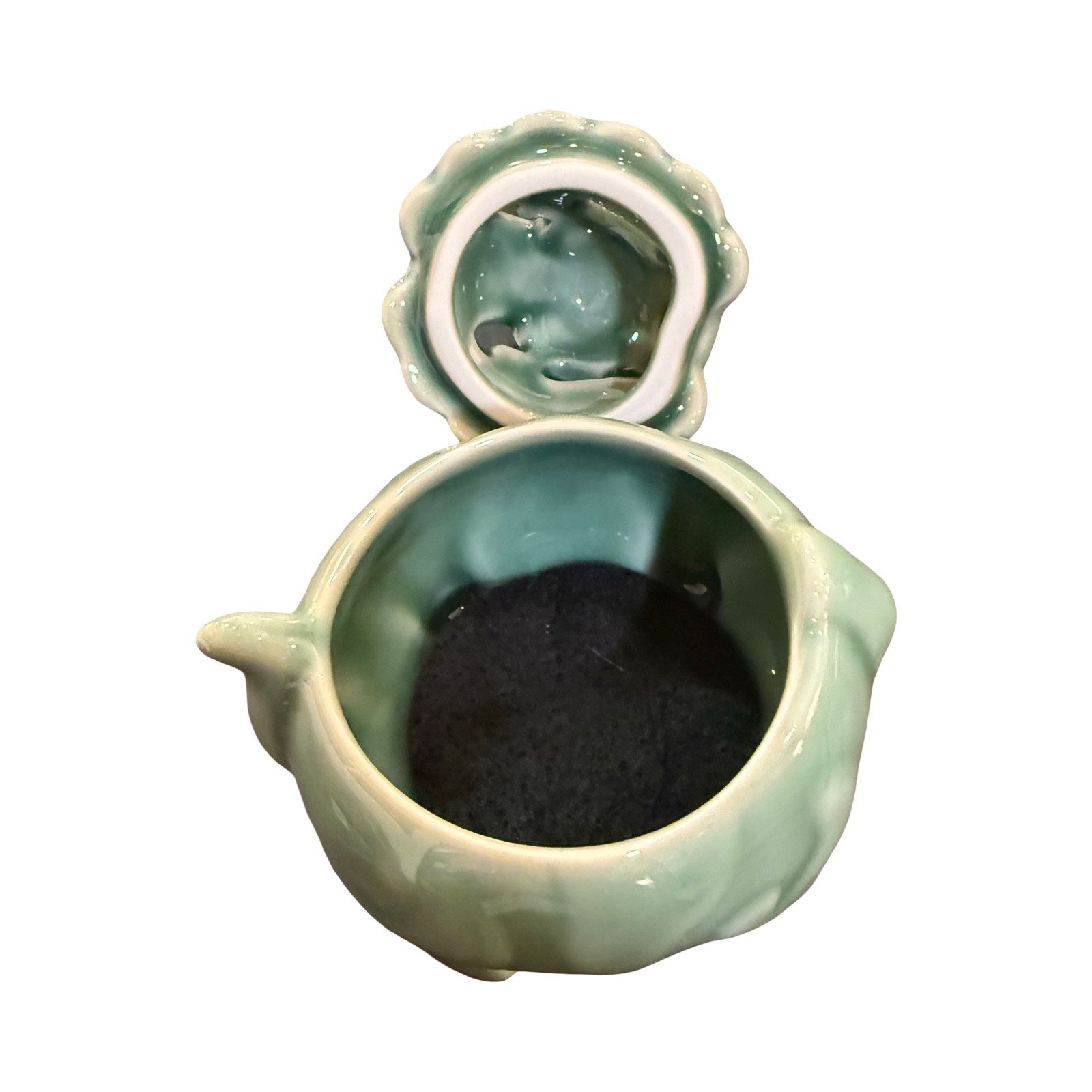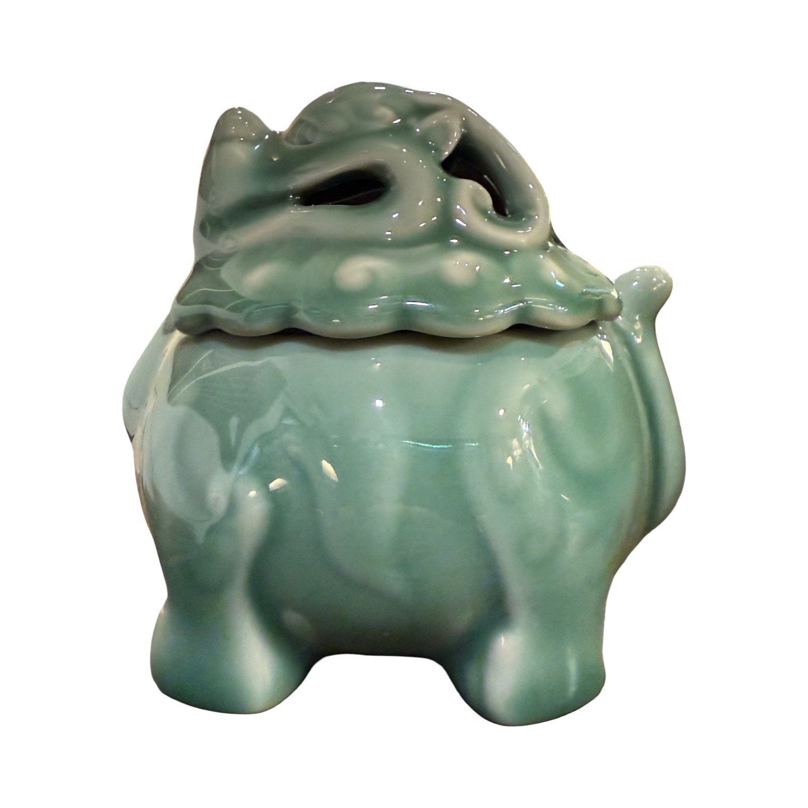This ceramic incense burner is made in the form of “Suan Ni”. “Suan Ni” is a revered mythical creature, traditionally known as the fifth son among the legendary “Nine Sons of the Dragon.” This divine beast resembles a lion and is distinguished by its serene, contemplative nature, preferring stillness over movement and finding pleasure in sitting peacefully. Most notably, “Suan Ni” has a unique affinity for smoke and fire, making it the perfect symbolic guardian for incense holders.