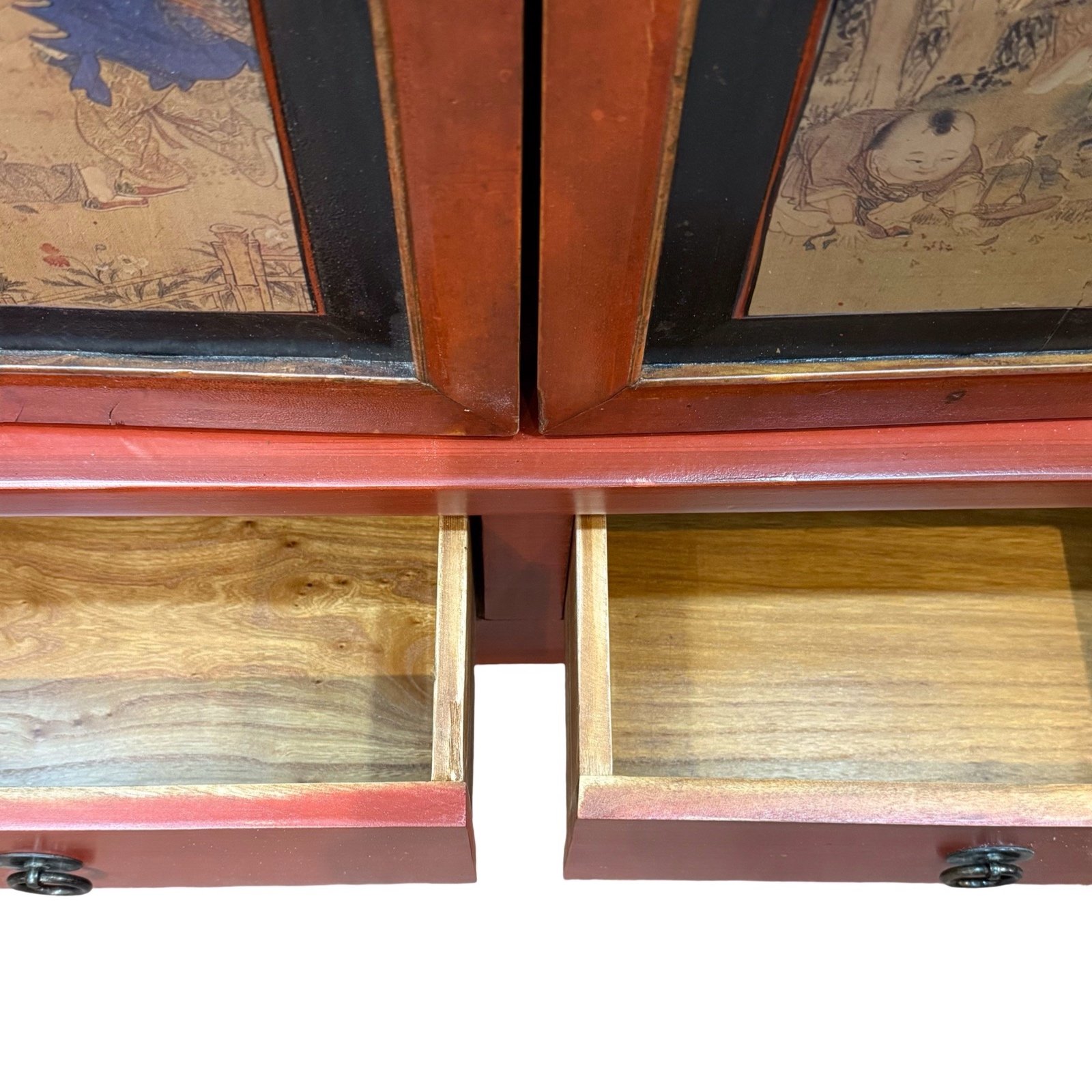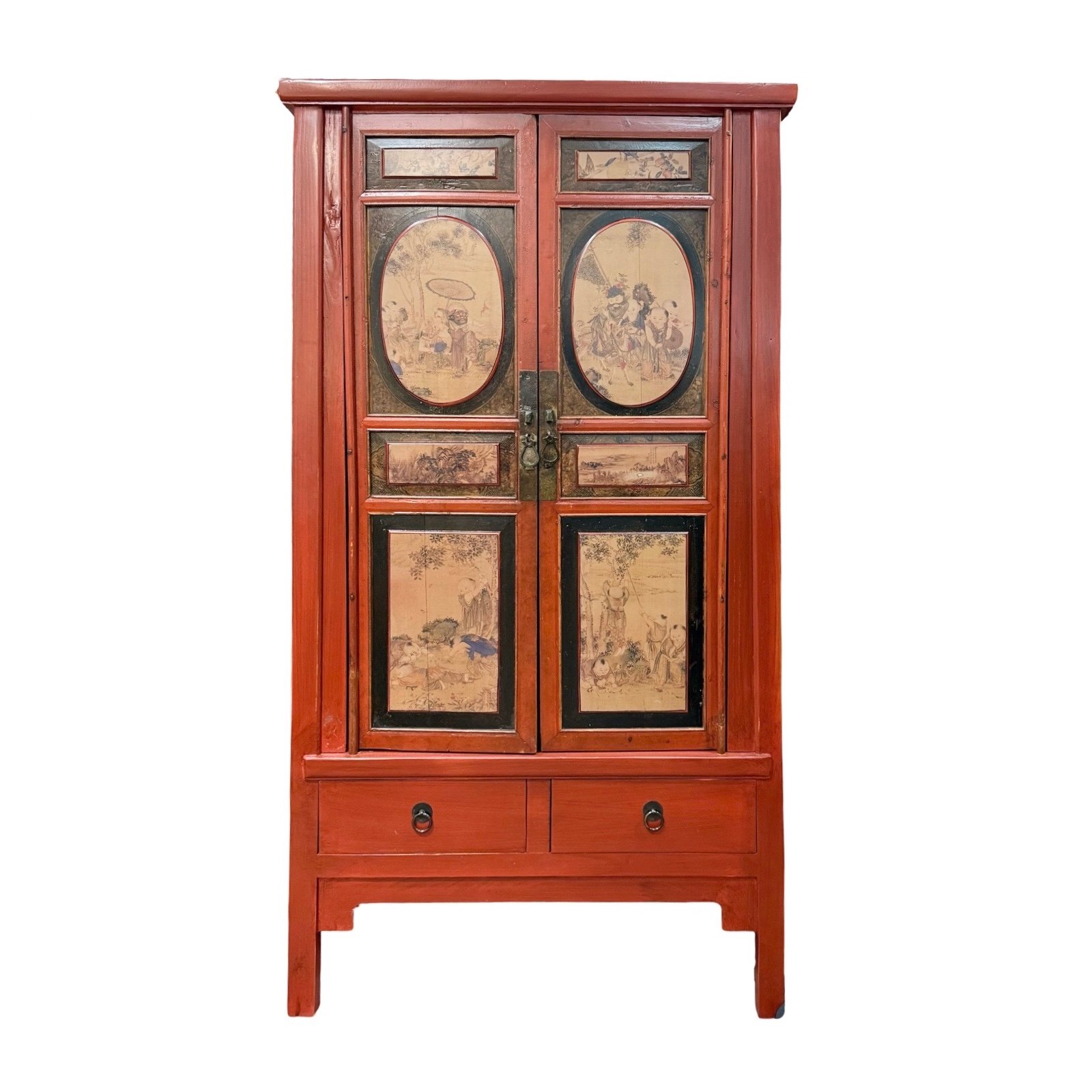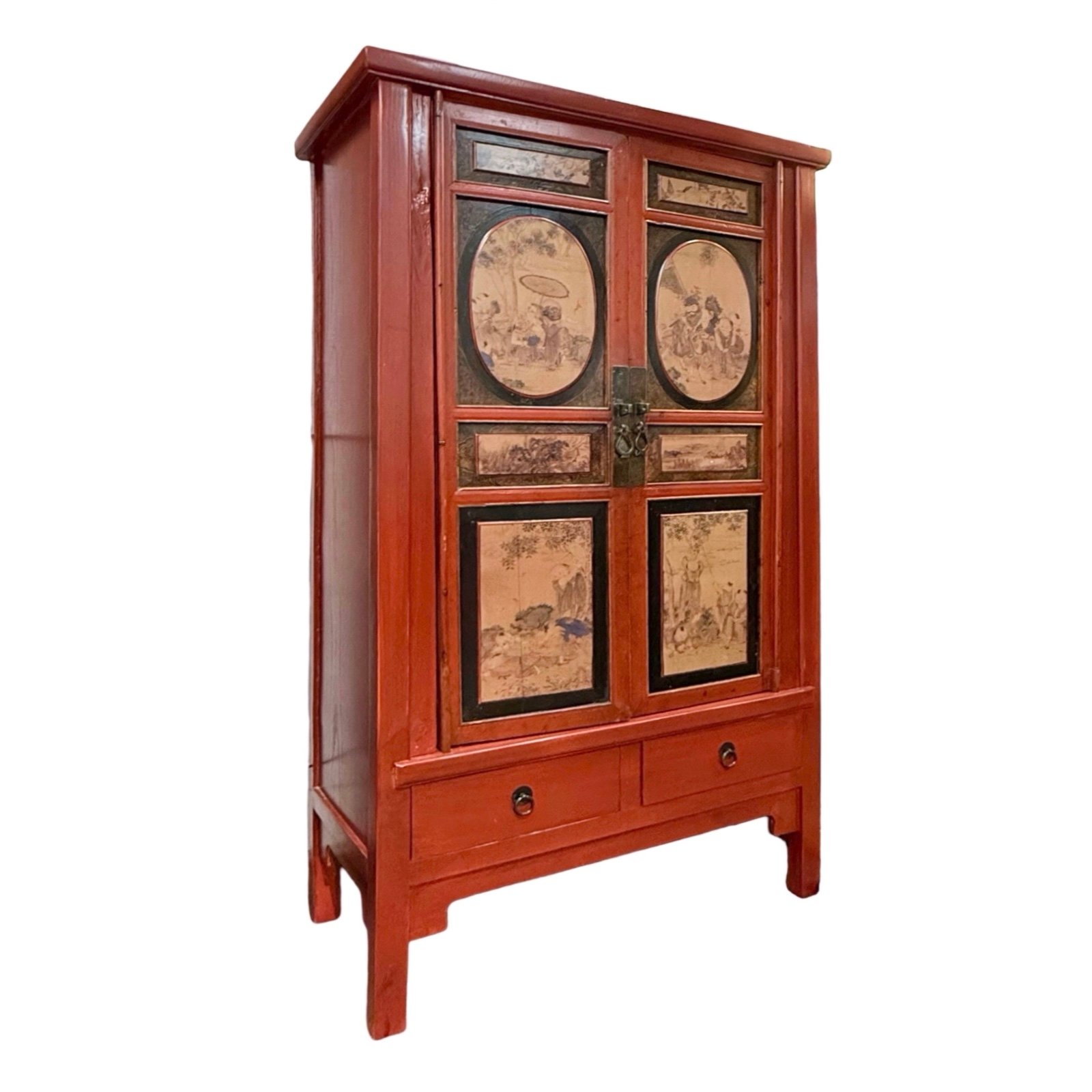 A newly-made tapered cabinet with repurposed old painted panels as its doors, the painted panels were from Zhejiang province and are approx. 70-80 years old.