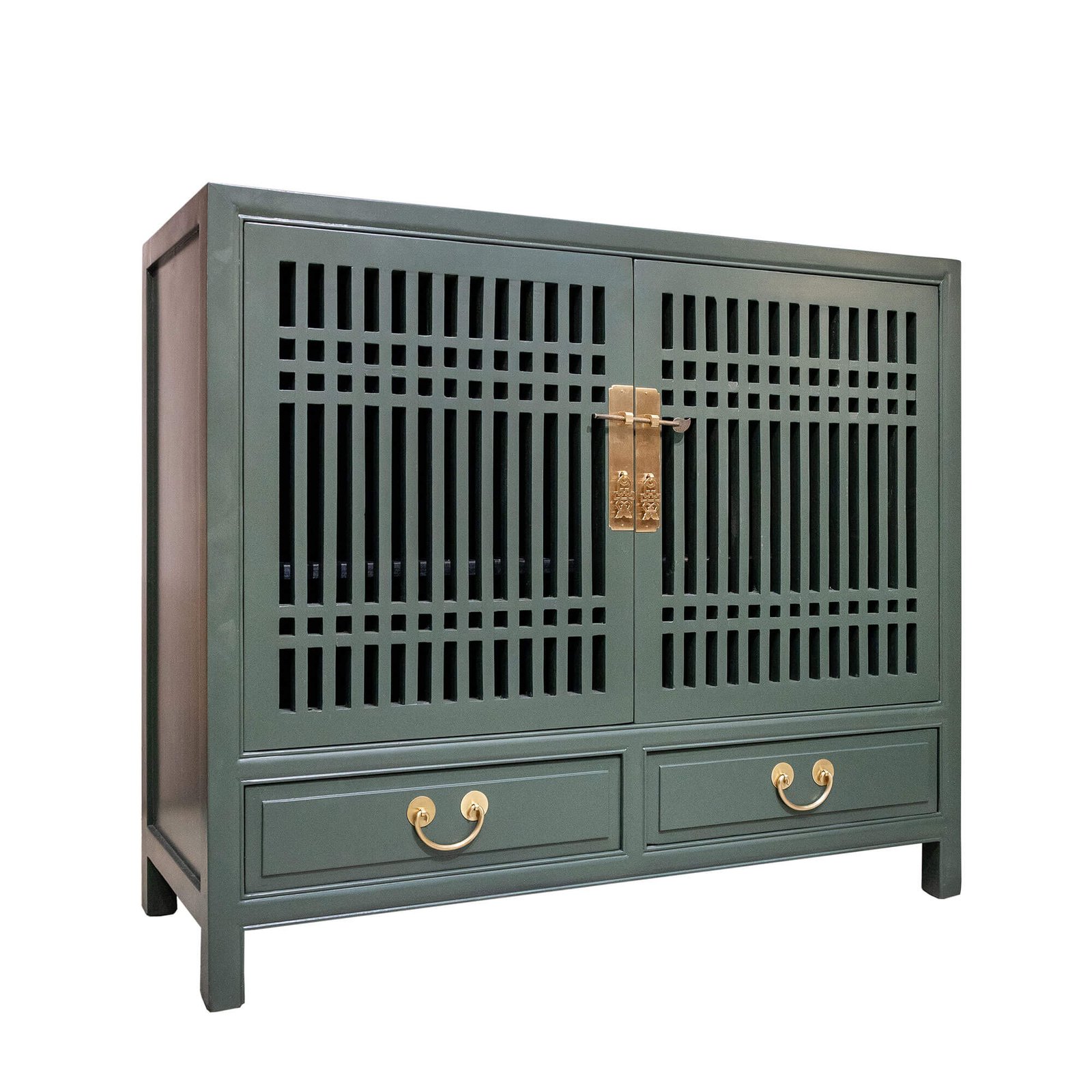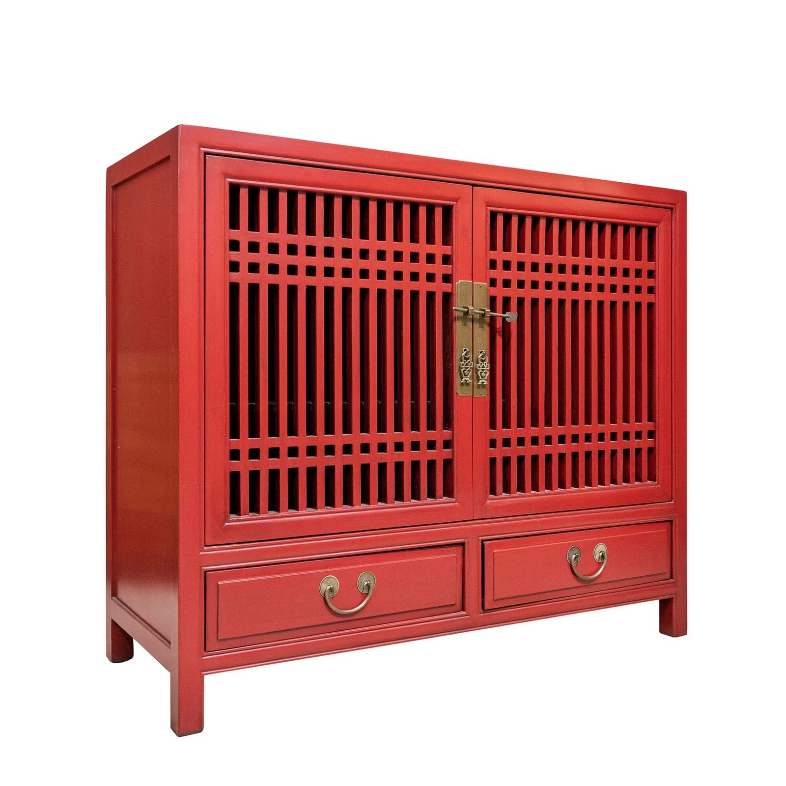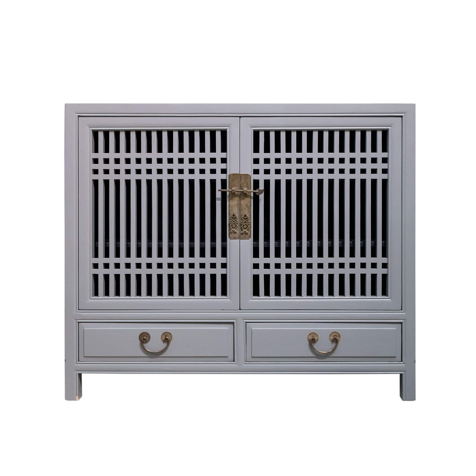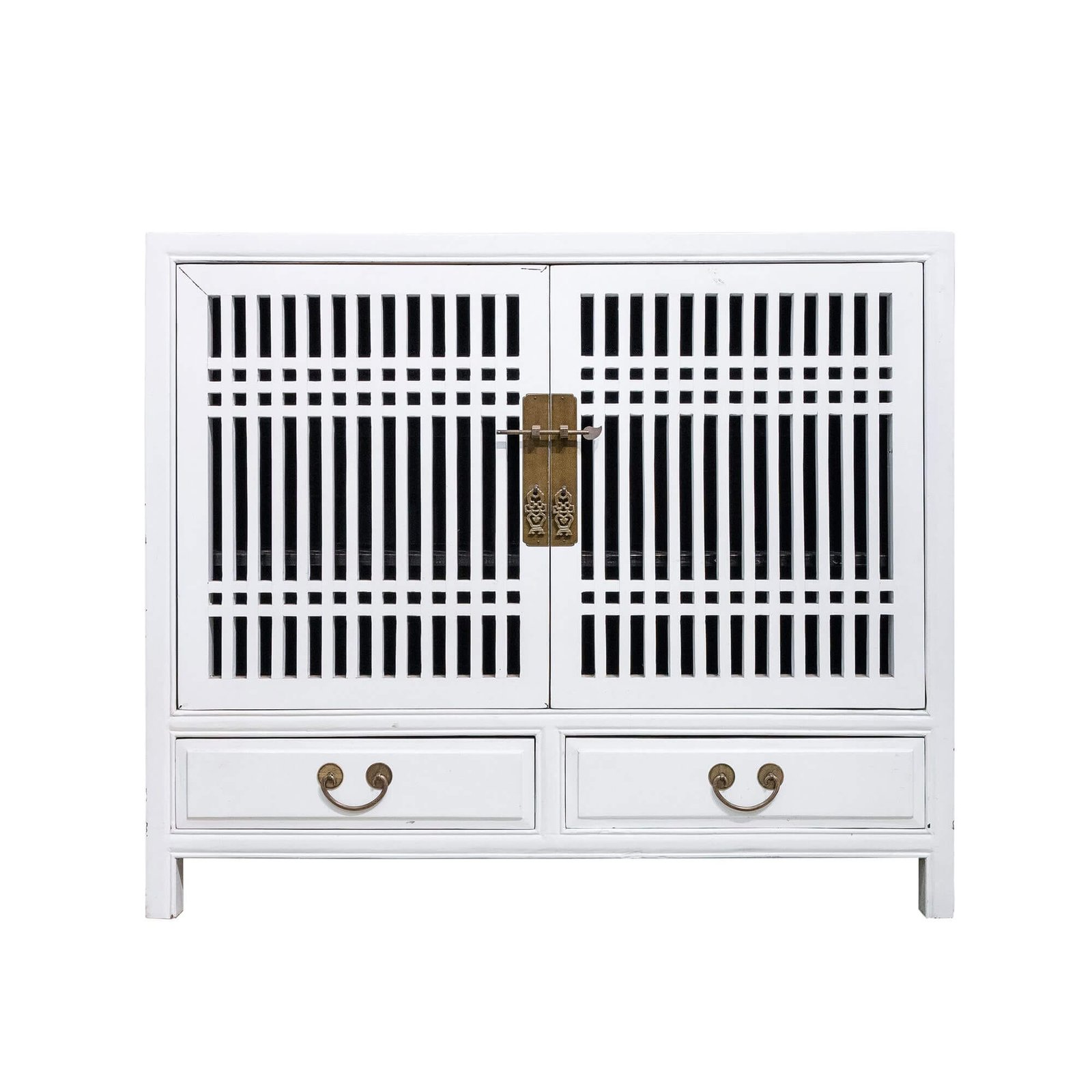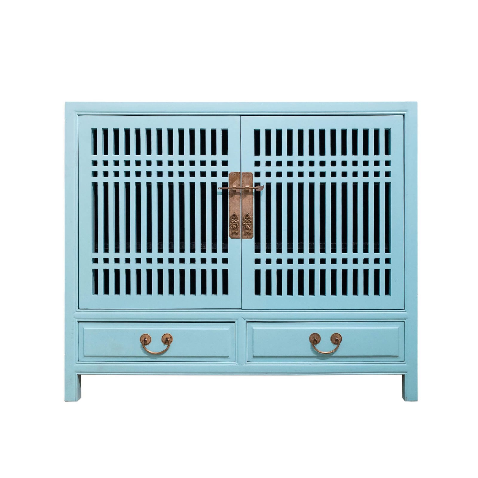 Wooden spindle cabinet with double doors & 2 drawers below