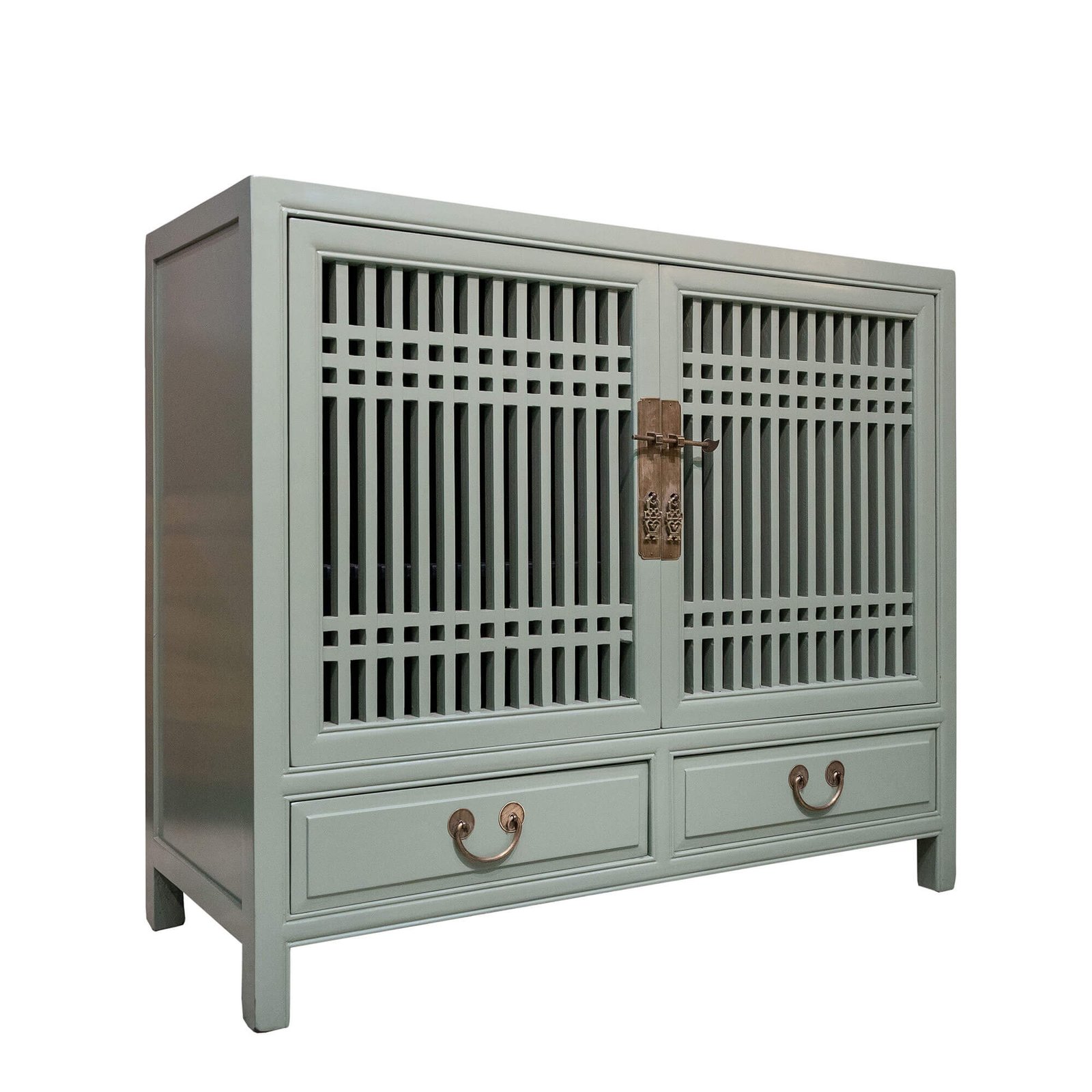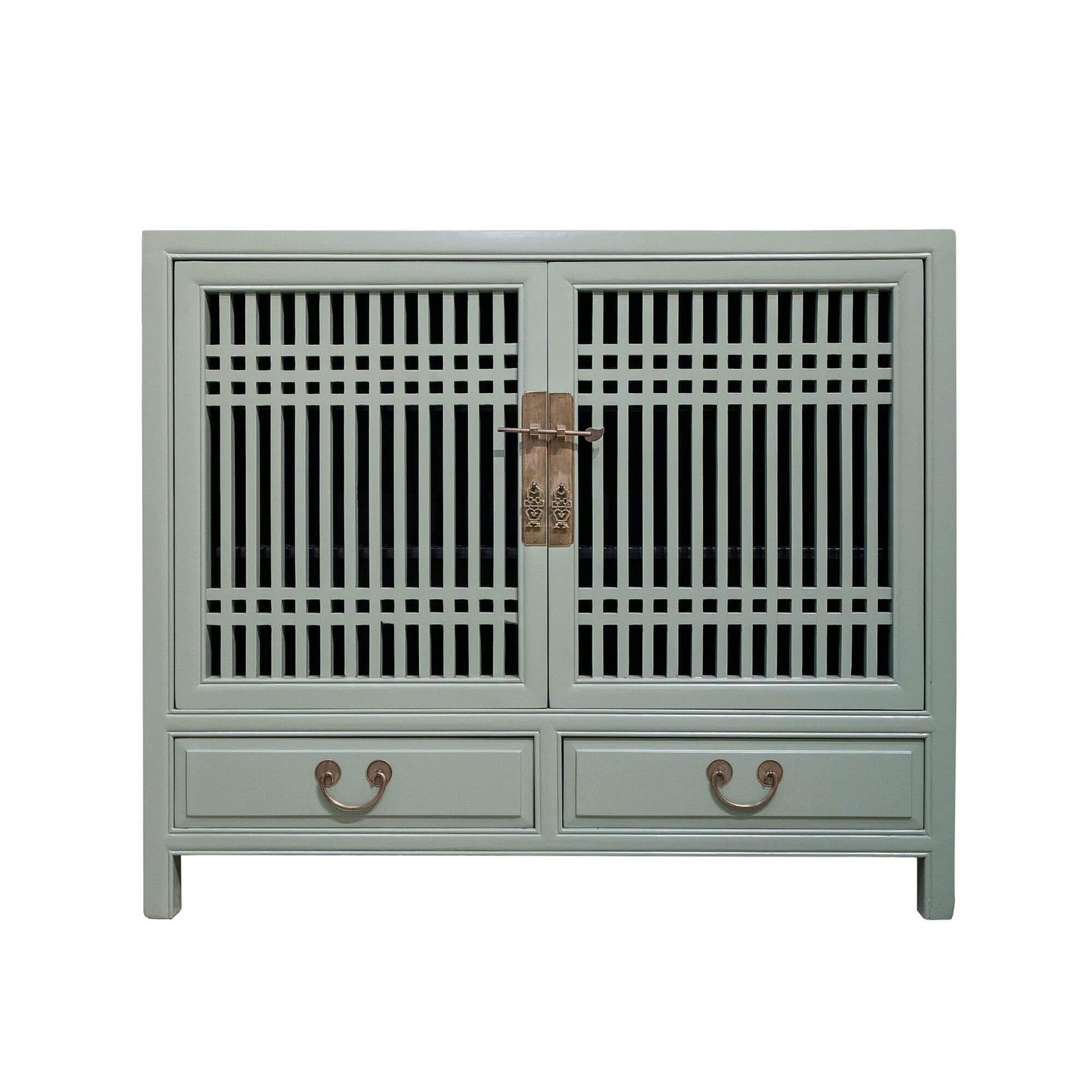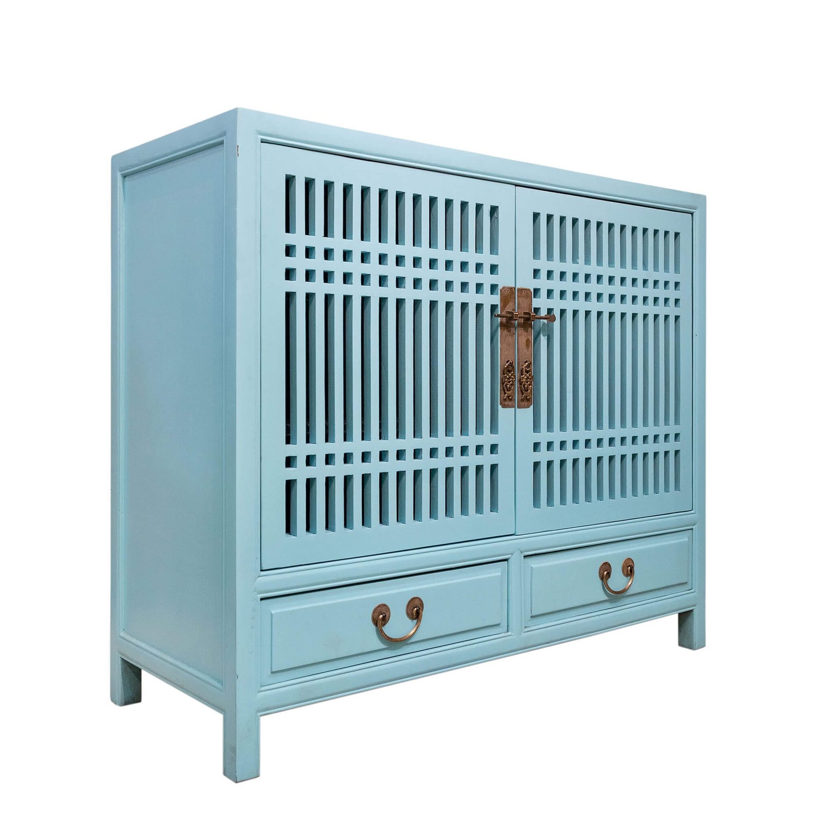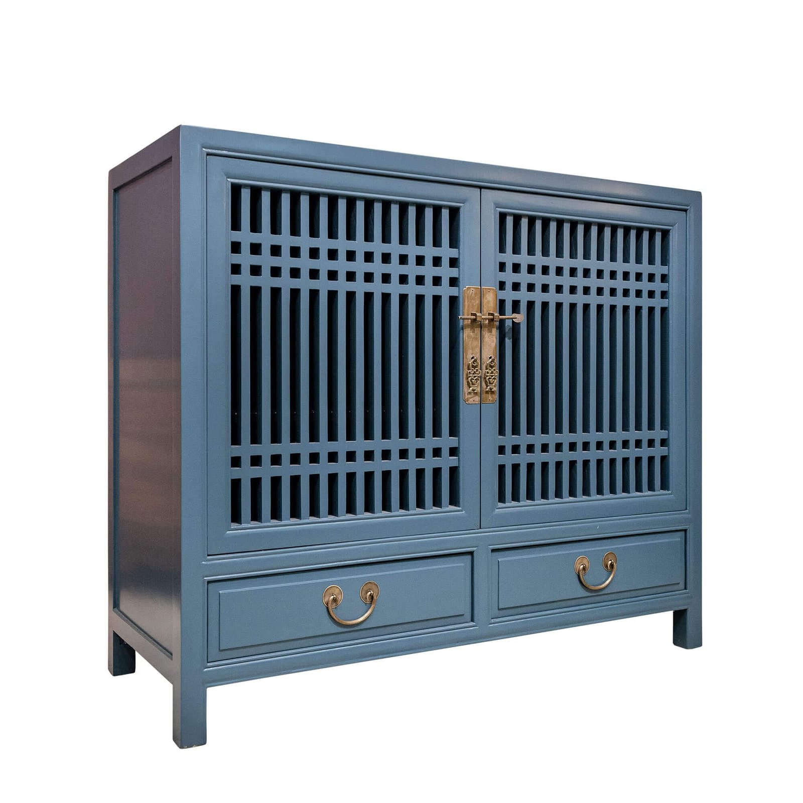 Wooden spindle cabinet with double doors & 2 drawers below