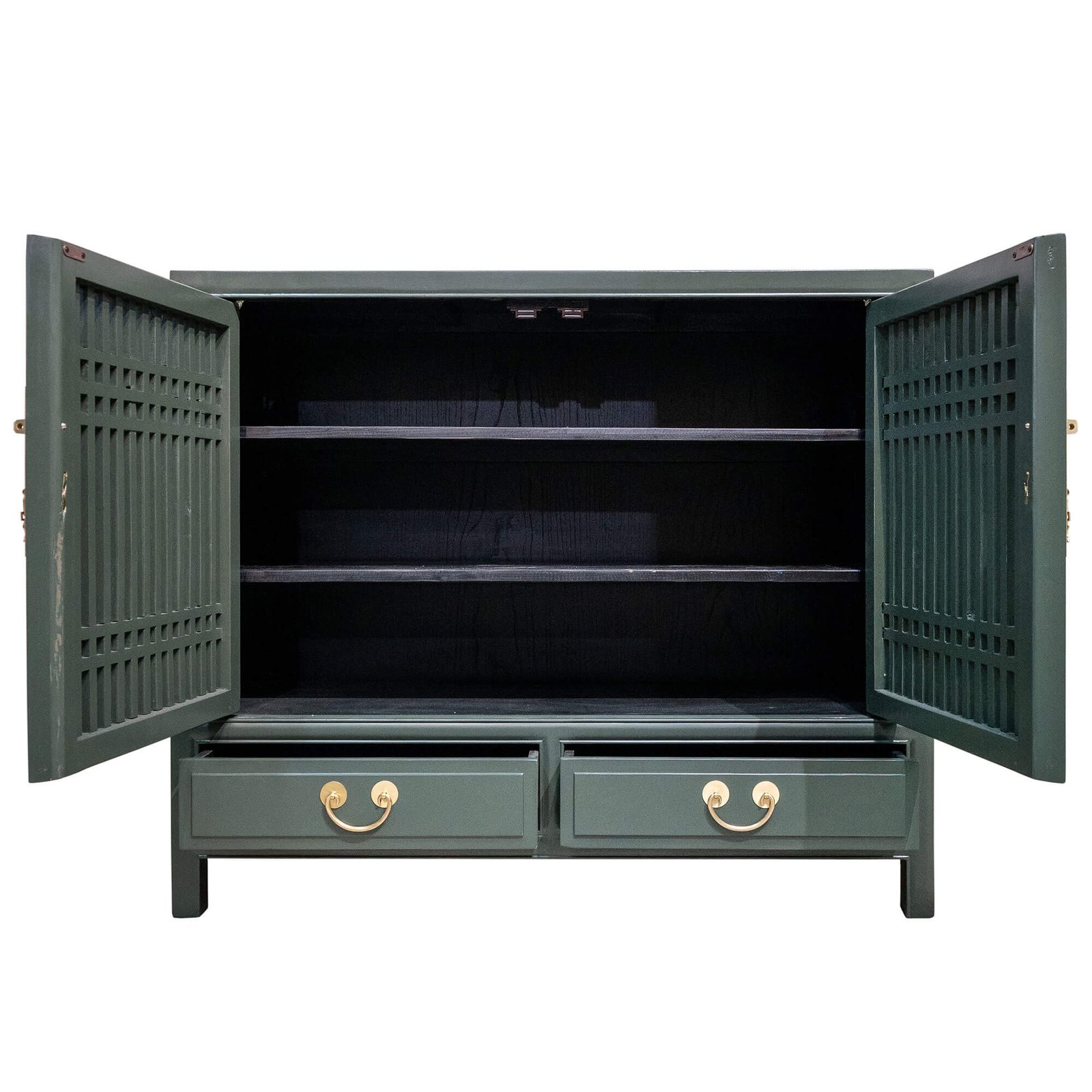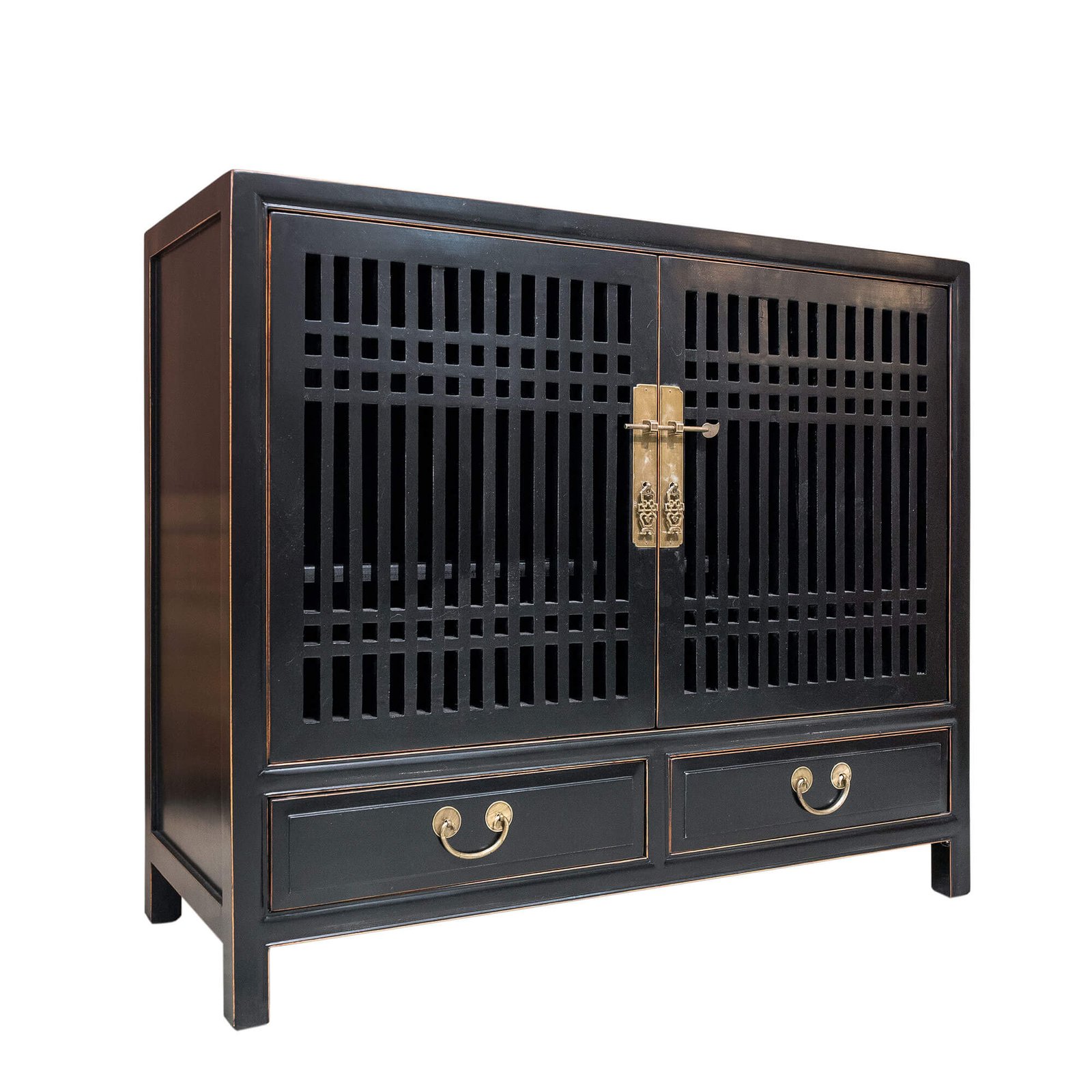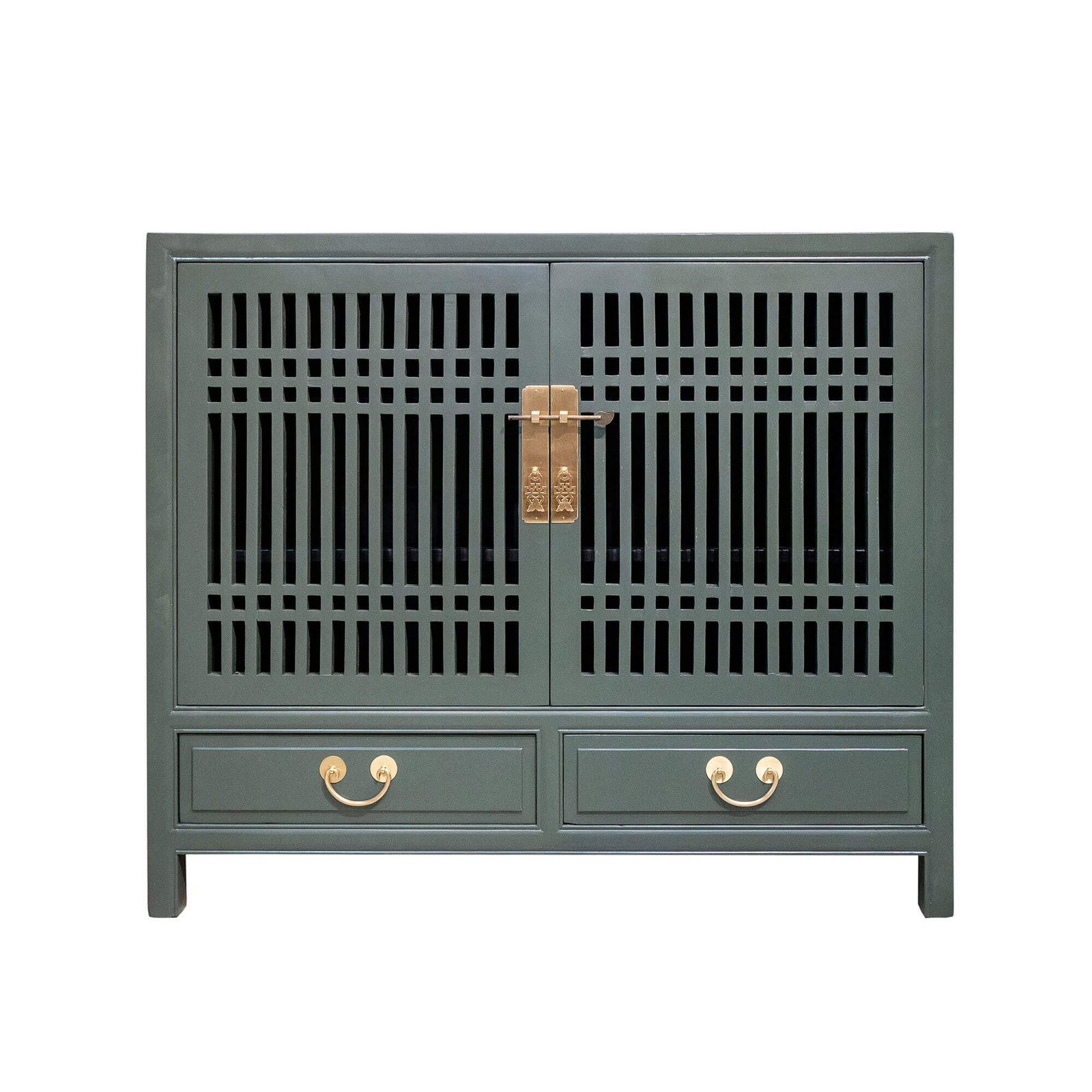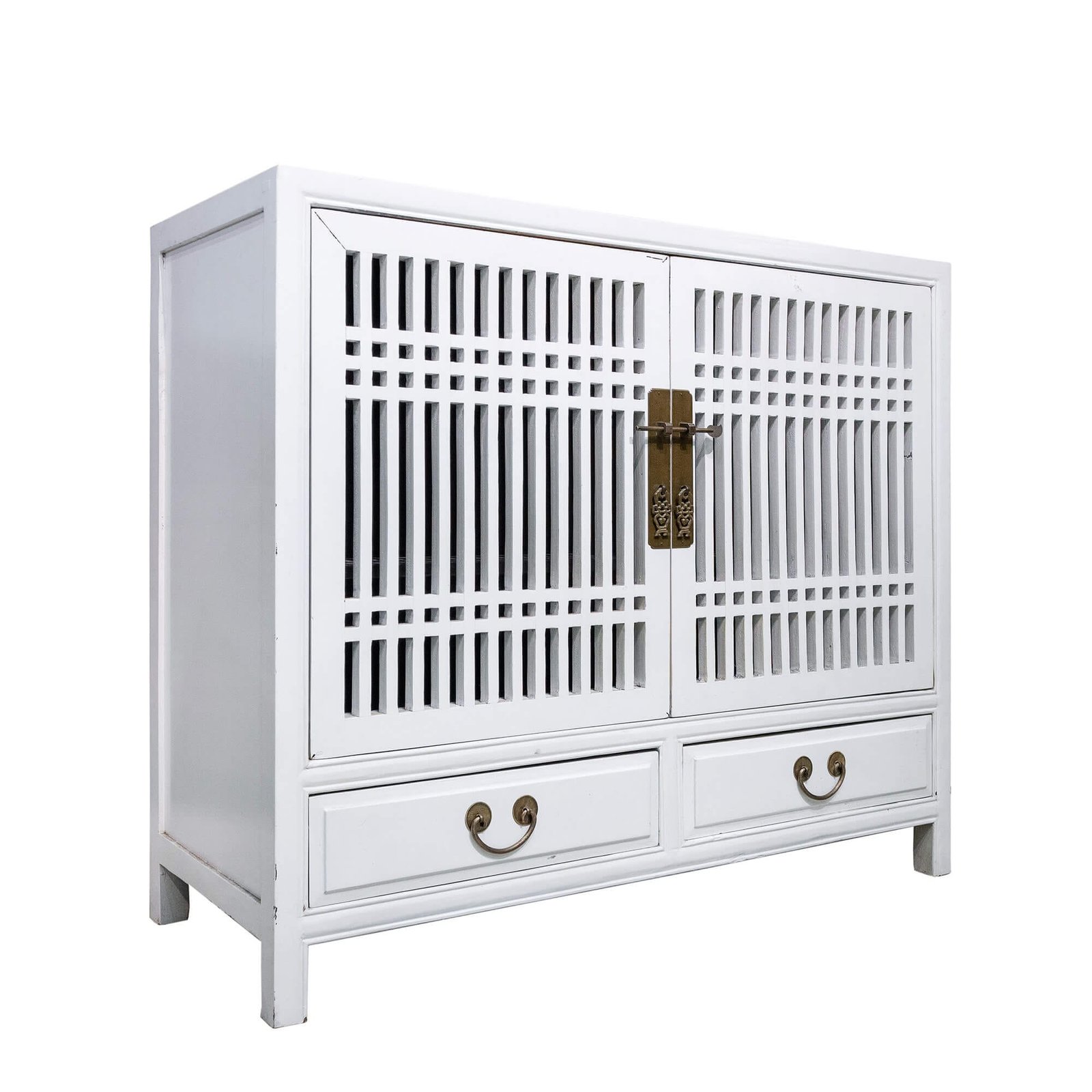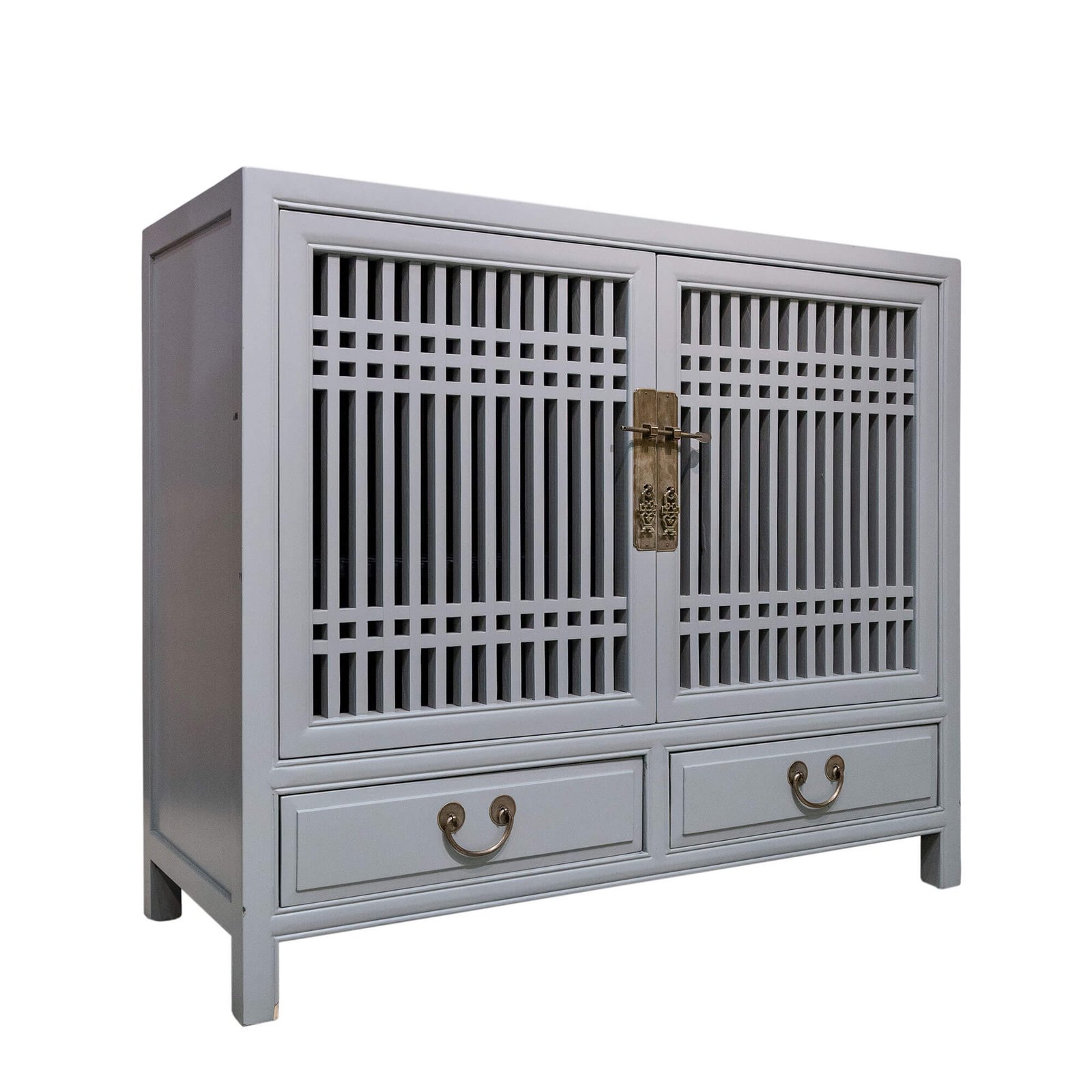 Wooden spindle cabinet with double doors & 2 drawers below