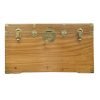 The brass hardware has been replaced as the original pieces were incomplete. Visible repair marks on the front and interior show where the original hinges and hardware were located – these are part of the chest’s authentic history.