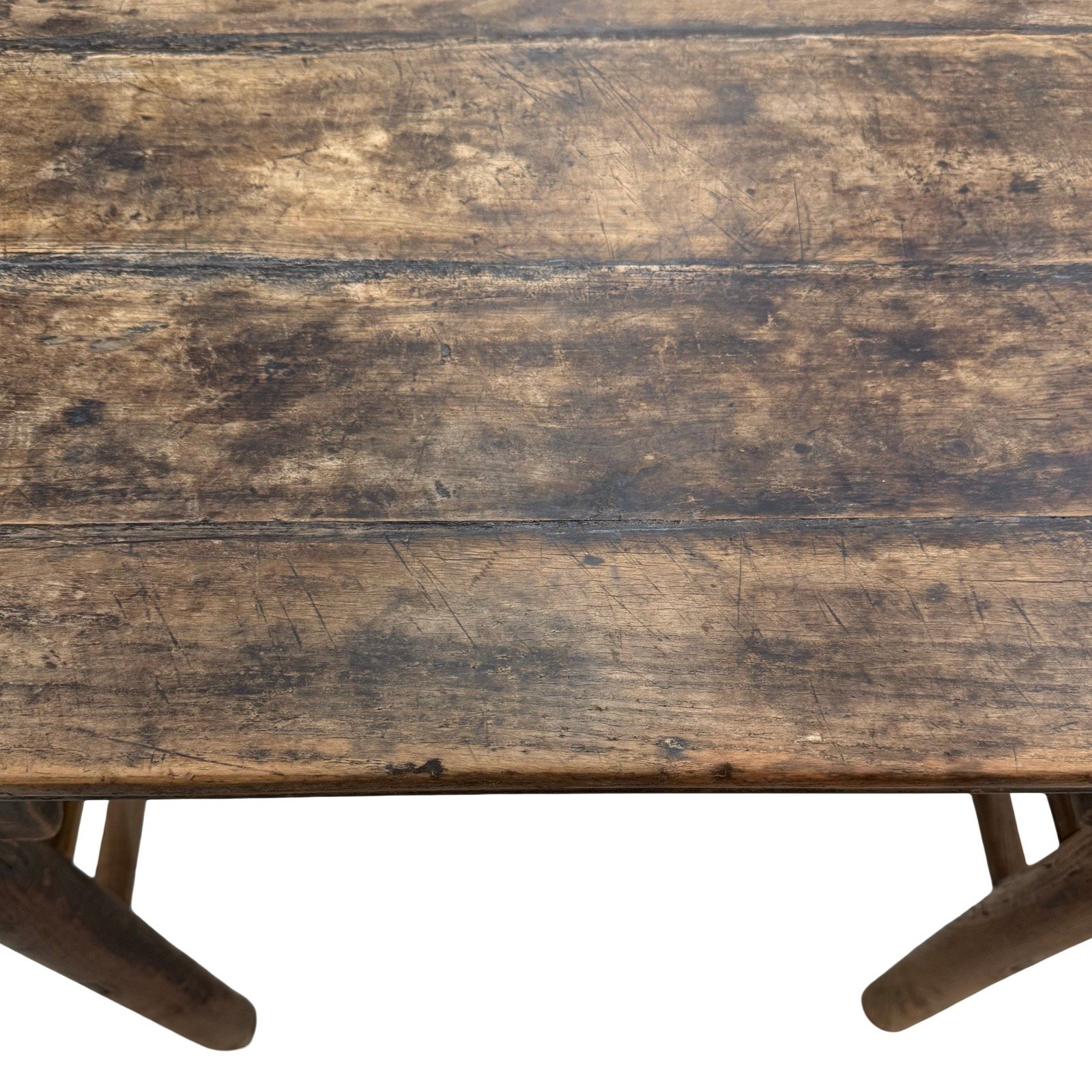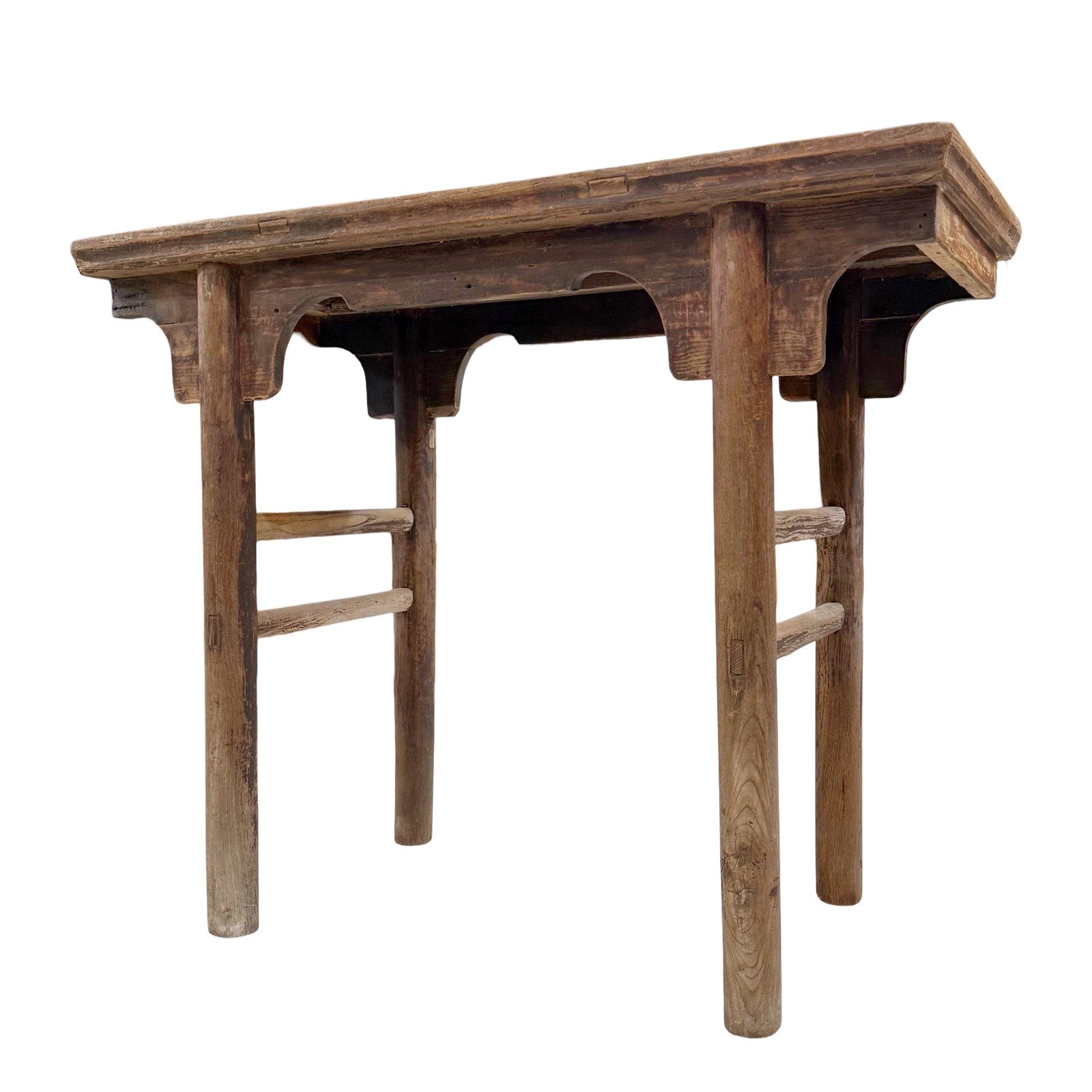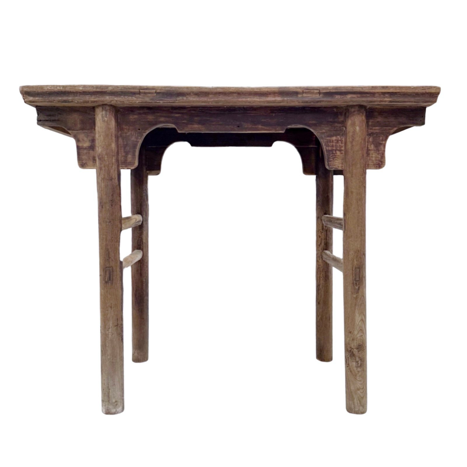 An antique Elmwood wine table from Shandong province, approx. 100-120 years old. This wine table has a classic Ming-style design and elegant round legs. The patina on this piece is very beautiful and has been preserved with a clear matte lacquer finish.